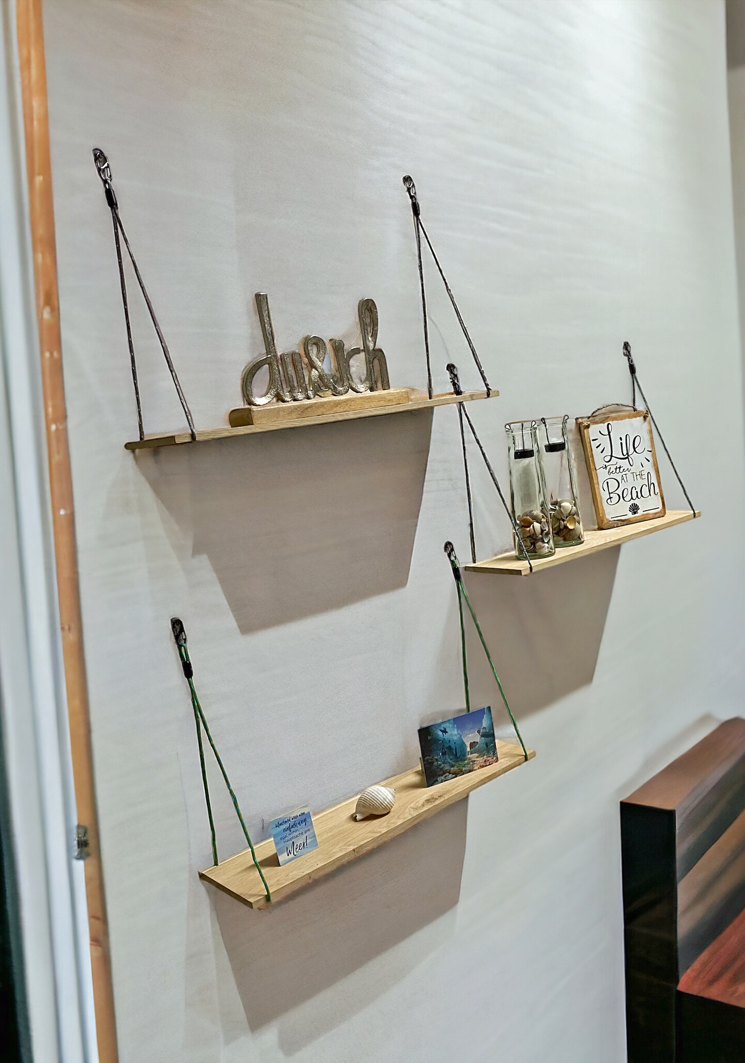 Bild 3:Zirkulär nachhaltig sind unter anderem diese Wandregale aus Restholz und Recycling-Material. Foto: DGM/Möbelfabrik Werner Knake